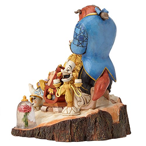 -. Feature : "Tale As Old As Time" from the Jim Shore Disney Traditions line / Log hewn sculpture commemorates Disney's "Beauty and the Beast" / Figurine captures Belle, the Beast, Lumiere, Cogsworth, Mrs. Potts, and Chip / Accurate features sculpted in hand painted stone resin / 7.75 inch height