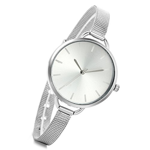 -. Feature : 100% Brand new watch, come with gift bag P.R.Inted Lancardo, Engraving service please contact me. / Package contains 1 piece pure silver tone ladies dress watch, big watch face, ultra thin stainless steel band. / Length:8.5"(21.5cm), Case Diameter:1.5"(3.6cm), Thickness:0.4"(0.9cm), Band Width:0.3"(0.8cm) / Modern Milanese Loop design watch band is made of silver tone plated stainless steel, the mesh wraps fluidly around your wrist,ensuring a perfect fit. / Living water resistant design (Not suitable for swimming, diving, shower, etc.)