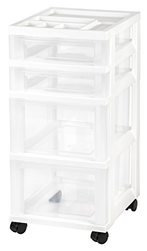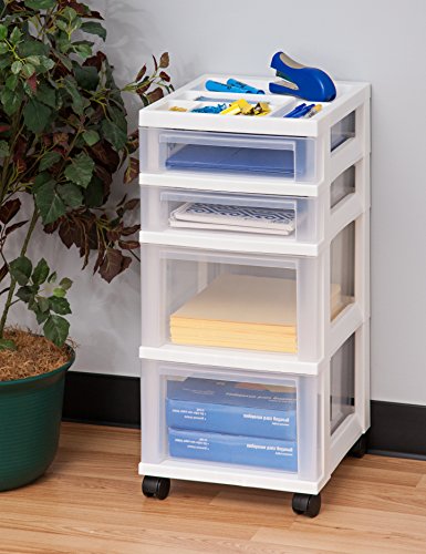 IRIS 4-Drawer Storage Cart with Organizer Top, White