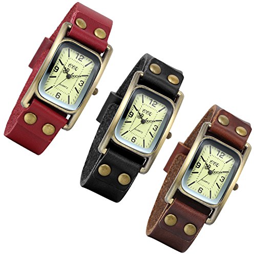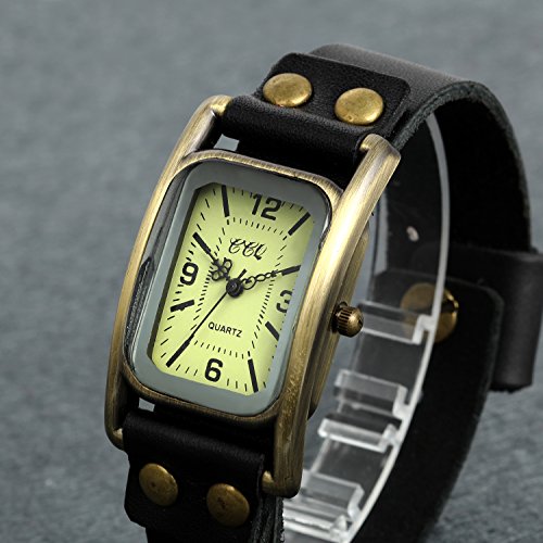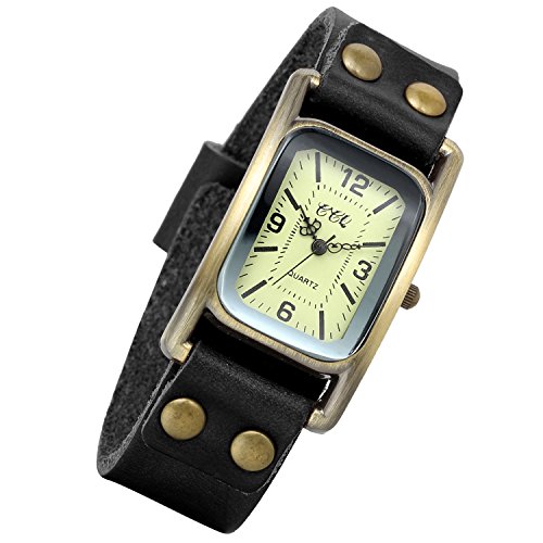 -. Title : Lancardo Unisex Vintage Bronze Rectangular Wrist Watch With Leather Band (Black)