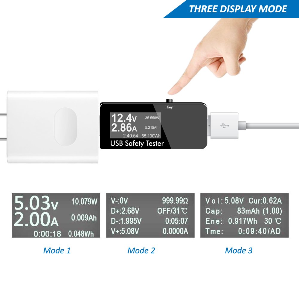 Current voltage tester compatible with QC 2.0 / 3.0 (rapid charge).