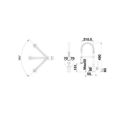 -. Title : BLANCO BLANCOMASTER-S Semi-Profi Armatur Schlauchbrause in Edelstahl finish, Hochdruck