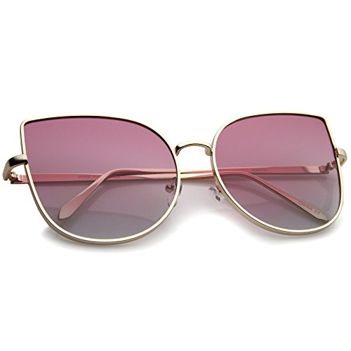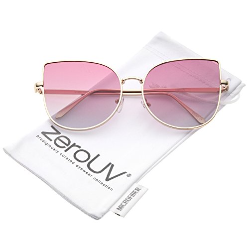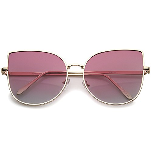 zeroUV - Women's Oversize Slim Metal Frame Gradient Colored Flat Lens Cat Eye Sunglasses 58mm