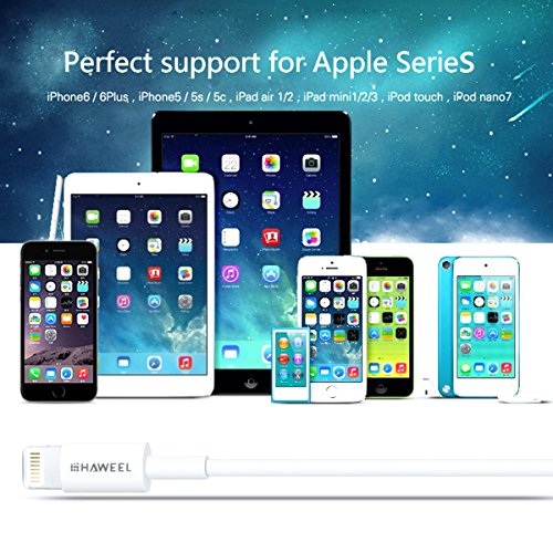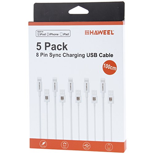 8 Pin USB Cable, HAWEEL [Apple MFi Certified] 3ft Sync Charger with Ultra-Compact Connector for iPhone 7 Plus / 7 / 6s Plus / 6s / 6 Plus / 6 / 5s, iPad Air, Mini, iPod touch and more. [5 Pack]