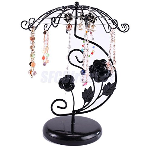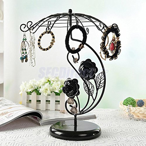 -. Feature : Description: Vintage style unbrella shape jewelry holder, great to organize all your earrings, bracelets and necklaces. The earrings display stands are great for individual, retail store or craft show displays. Specification: Items condition: 100% Brand New and High Quality Material: Alloy Color: Black, white(optional) / Size Chart: Umbrella diameter: Approx.27cm/10.63inch Total height: Approx.32cm/12.60inch Base plate diameter: Approx.14cm/5.51inch Package includes: 1 x Jewelry display holder / item will be shipped from China, need 20-30 days to deliver