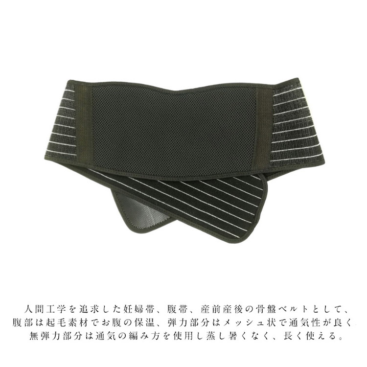 | 産前、産後にお使いいただけるよう機能性バツグンの腹帯です。改良一触式されたマジックテープが、しっかりめにくっついて、つけ心地がとてもよく、締め付け感もないあなたの体に合わせた調整ができます。腹帯、妊婦帯、マタニティベルトとしても、骨盤ベルト産前産後としても使えます。人間工学を追求した妊婦帯、腹帯、産前産後の骨盤ベルトとして、腹部は起毛素材でお腹の保温、弾力部分はメッシュ状で通気性が良く、無弾力部分は通気の編み方を使用し蒸し暑くなく、長く使える。 | |