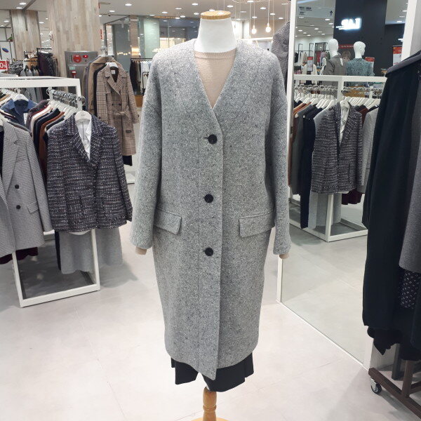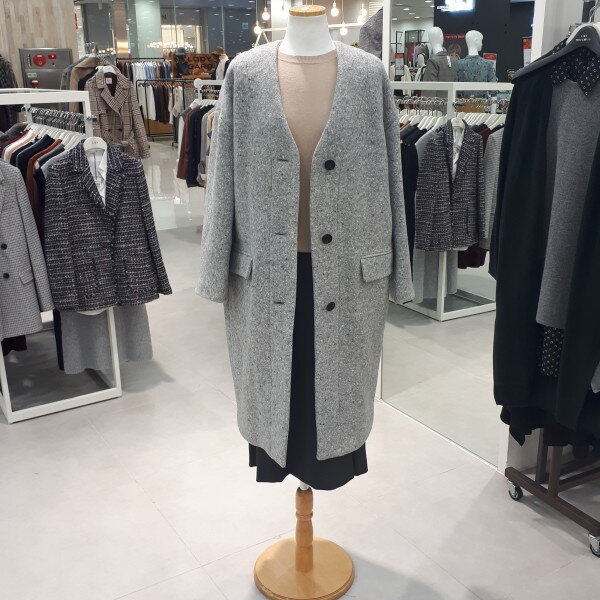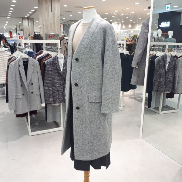 폭신한 촉감의 울 소재로 가볍고 따뜻하며 드롭 숄더의 오버핏 실루엣이 멋스러운 노카라 울 코트 입니다