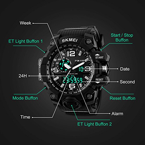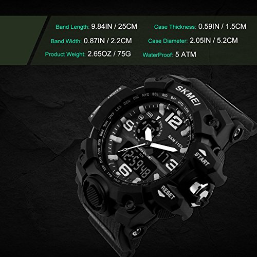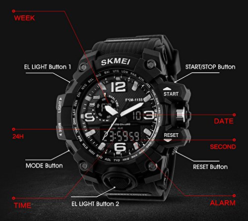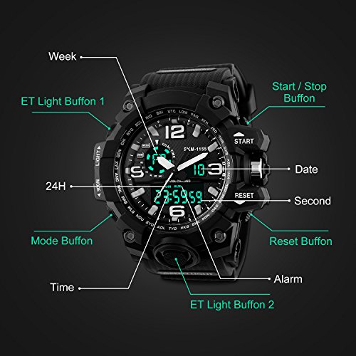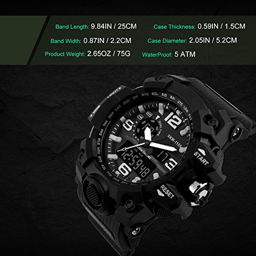 Studio : Aposon Publisher : Aposon Binding : Watch Product Description Highlights: ? Original Japanese Quartz Movement: provide precise and accurate time keeping ? Dual Dial: Analog and Electronic LED ? Dual Timezone Support ? LED Back Light ? Military Time: 12H/24H Date,Day ? Calendar Day and Date ? Alarm Mode Function ? Stop Watch Timer ? Shock Resistant, suitable for a both outdoor and indoor sports, such as running, climbing, ect ? 5 ATM Waterproof: 164 Ft / 50 M (Lifetime waterproof, not suitable for long time underwater activities - shower, swimming. Please DONOT press any buttons underwater.) Material: ? Case Material: Rubber, Plastic ? Band Material: Silicone Rubber ? Mirror Surface: Mineral Glass Mirror Specification: ? Dial Case Diameter: 2.0 inch / 5.2 cm ? Case Thickness: 0.7 inch / 1.7 cm ? Band width: 0.9 inch / 2.2 cm ? Band Length: 10.2 inch / 26 cm ? Watch Weight: 3.2 oz / 92 g **NOTE**: ? Please DONOT Press Any Buttons Underwater. Also avoid the use in extreme hot or cold temperature. ? If mist or droplets found inside watch surface, please contact manufacturer immediately for maintenance to prevent moisture corrosion of the internal components. ? Clean the strap by a soft cloth on regular bases is highly recommended. ? Too much water contact will shorter watch life. What Is In The Package: ? Aposon Dual Dial Sport Watch x 1 ? Instruction Manual x 1 0