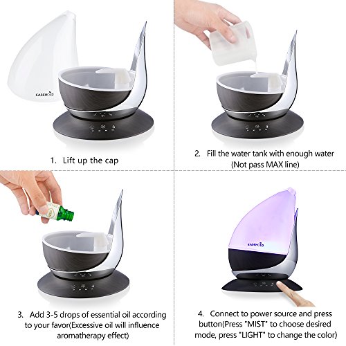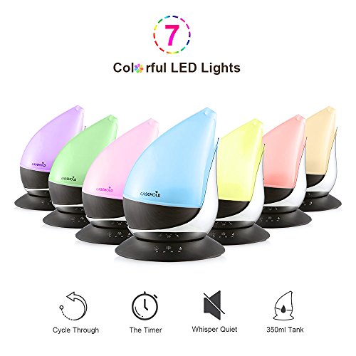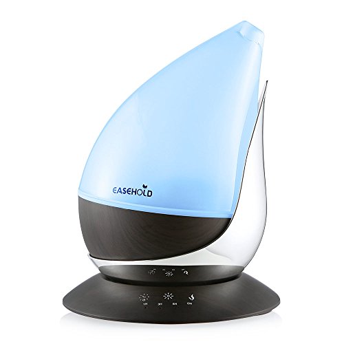 Easehold Essential Oil Diffuser,350ml Ultrasonic Aromatherapy Humidifier with 7 LED Light and Four Timer, Auto Shut-off,Black Wood Grain