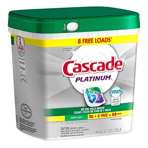 Studio : Cascade Publisher : Cascade Binding : Electronics Product Description Cascade® PlatinumTM ActionPacsTM clean stuck-on food in one wash, with no prewash needed. Plus, with 3x more* film-fighting power, they're our best clean for sparkling silverware and dishware. Premium tough food cleaning powers away stuck-on foods, while built-in rinse aid action and the grease-fighting power of Dawn® make your dishes dazzle. Plus, it's formulated to help prevent hard-water filming to keep your machine looking fresh and clean. Simply pop in an ActionPac and reveal a Platinum sparkle. *Versus the leading gel after 15 cycles in hard-water lab test. 0