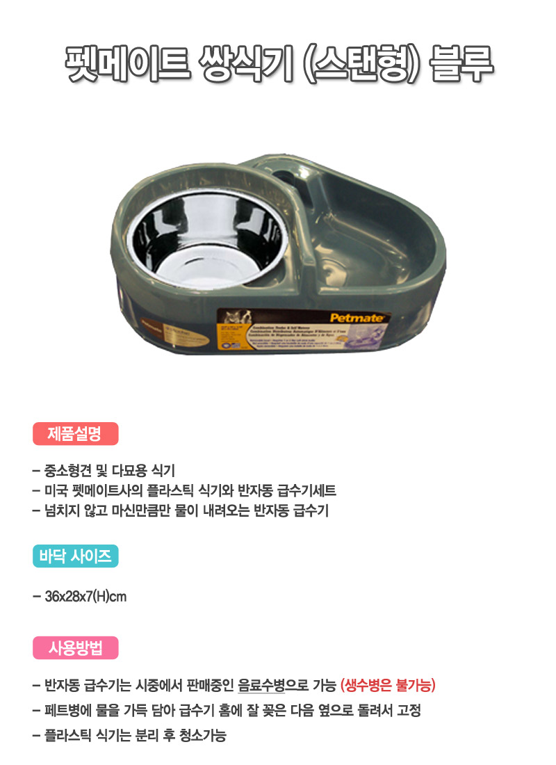 Blue Semi-Automatic Watering Set Stencil Water Bottle Dog Bowl Kitten Dog Puppy