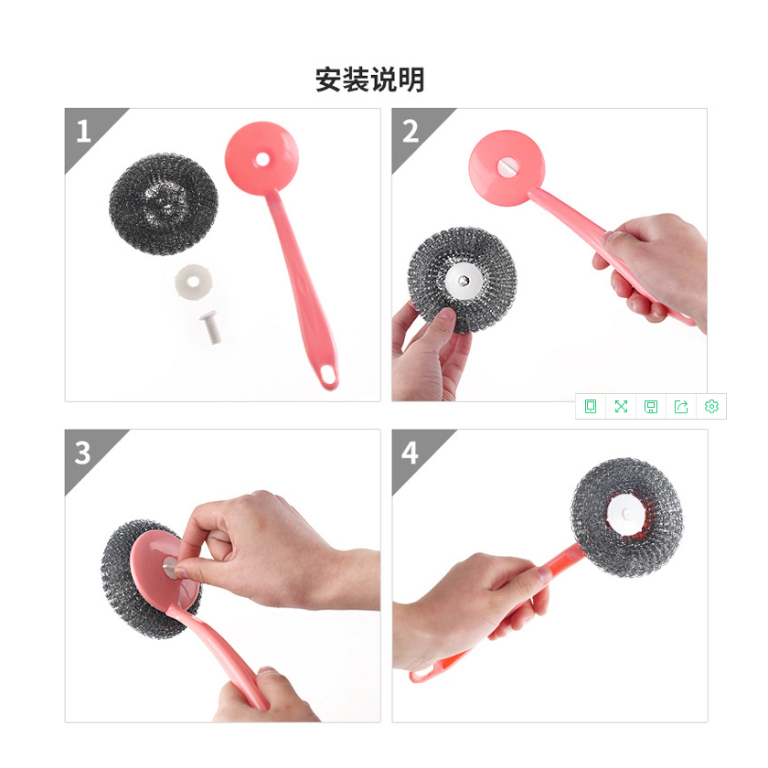 Size: the handle length is about 25cm, and the diameter of steel wire ball is 9cm (+ 1cm).