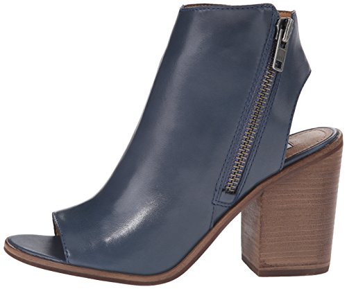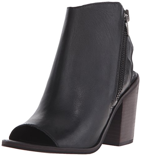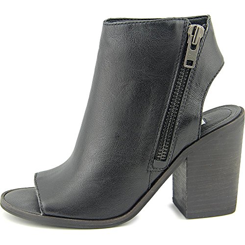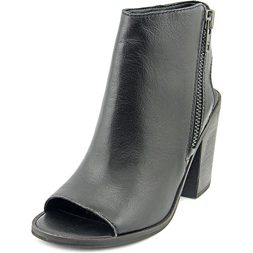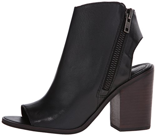 Product DescriptionBlock-heeled, slingback, peep-toe leather bootie with side zip detail0