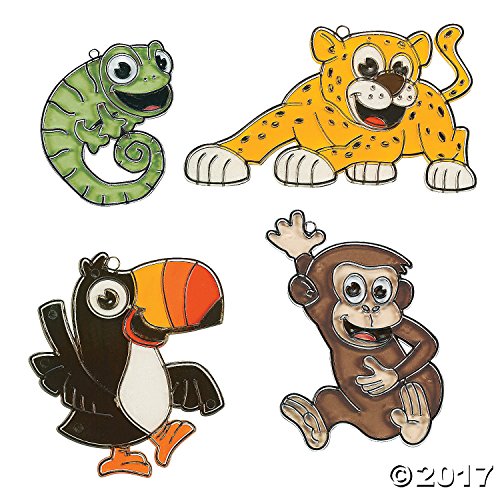 24 Paint Your Own Safari Animal Sun Catcher Kids Craft Suncatchers Money Parrot Leopard Gecko