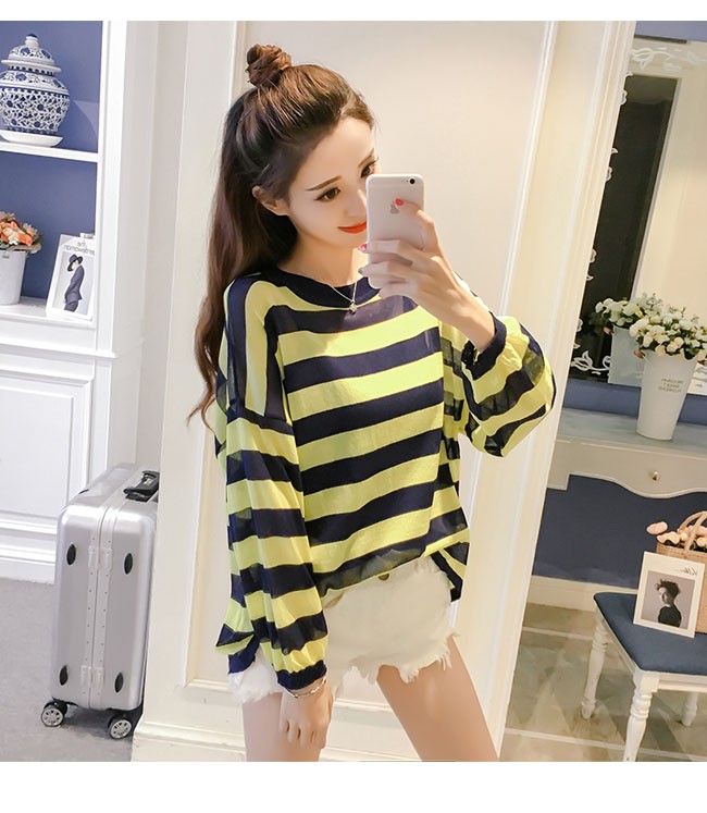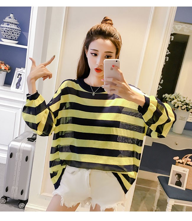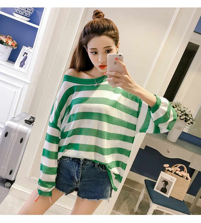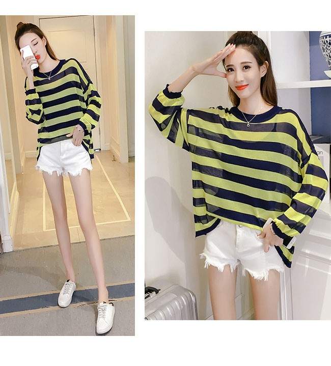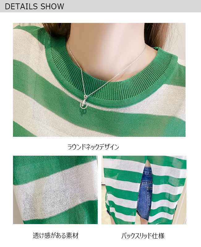 | 商品名 | ニットブラウス ニットシャツ ニットトップス レディース 薄手 長袖 ストライブ柄 ラウンドネック 透け感 ゆったり 春夏 |