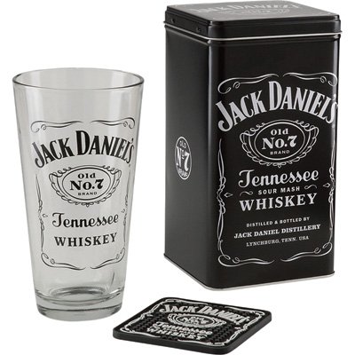 -. Feature : A great gift for your favorite Jack enthusiast, or for mixing your own favorite cocktail. / Celebrates Old No. 7 sour mash whiskey. / Jumbo 20-oz. mixing glass. / Rubber 3.5" square coaster. / Collectible tin.