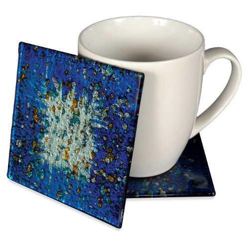 -. Title : Angelstar 19047 Handmade and Hand-Painted Glass Blue Ocean Coasters, 4-Inch, Set of 4