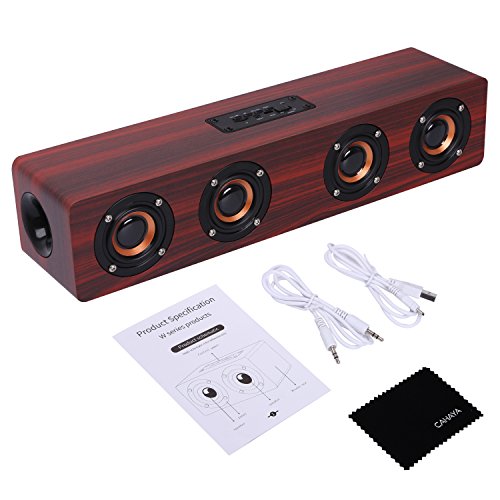 CAHAYA Bluetooth Speaker Wireless Bluetooth Soundbar with Subwoofer 4 Loudspeaker Support TF Card FM Radio (Red)