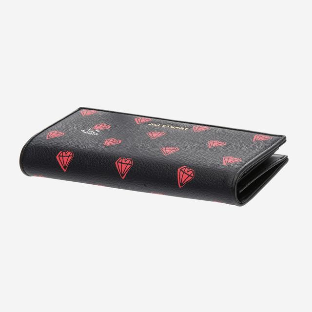 블랙 컬러에 레드 컬러의 귀여운 하트 다이아몬드 패턴이 돋보이는 장지갑입니다.