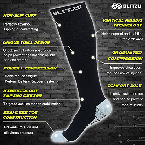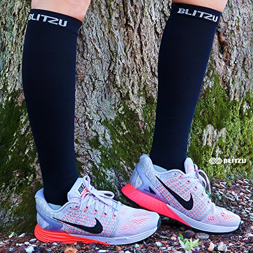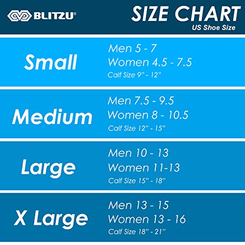 Studio : Blitzu Publisher : Blitzu Binding : Misc. Product Description Advantages and benefits of wearing Blitzu® Compression Socks: Hikers, Walkers, ramblers, runners and joggers - Spend your whole day walking and running without muscle strains, cramps, and fatigues. Outdoor enthusiasts and Athletes - Less muscle strain means you can train harder, feel stronger and perform better in the gym and on the field. Jobs that involve lots of standing - Bring more energy into your legs! No more foot pain from standing all day long at work! Air Travelers - Great for air traveling - Best Flight socks - Helps reduce pain by improving blood flow in the legs. People with leg problems - Prevent and reduce symptoms of Shin Splints, Calf Cramps, swollen legs and Pulled Muscles. Features: AVOID INJURY: Improve blood circulation. Prevent unnecessary injury and pain by offering optimal muscle support during everyday activities. SPEED UP RECOVERY: The compression helps relieve muscle pain as well as aids in muscle recovery rehabilitation. WARMING EFFECT: Support full motion flexibility and Warm up your legs effectively. COMFORTABLE: Ergonomically designed for full range of motion and superior comfort. Size Chart 100% SATISFACTION GUARANTEE Your satisfaction is our guarantee! If you aren't happy with your purchase for any reason, let us know and we'll refund your money back or send you a replacement! That is how confident we are that you will LOVE your compression socks. Click on the Add to Cart button, and have your Blitzu Compression Socks shipped today! 0 |