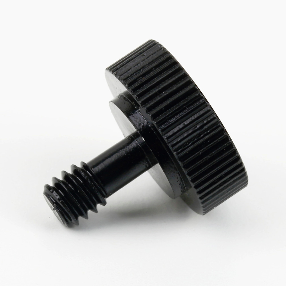 | 1/4" metal male thread and 1/4" metal female socket. 20mm diameter plastic base. Shaft is 10mm in length including the thread 5mm without thread. Total length including base is 20.5mm. Shaft is 4.5mm in diameter. Specifications: Material:Alumium Diameter:20mm Total length:20.5mm Color:Black Package contents: 1x 1/4 Screw for Camera/Tripod/Flash Bracket Male/Female |