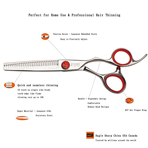 1 hair cutting scissors and 1 thinner included + 2 red detachable rubber finger rings +1 fine leather case,a holiday gift for hairdresser