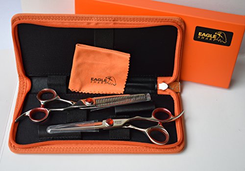 Professional 6.0-inch Shears Cutting &Thinning Scissors Kit Convex Edge Hairdressing Scissors Set Japanese 440C Stainless Steel with Free Fine Orange...