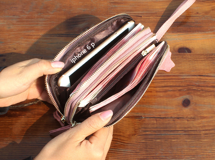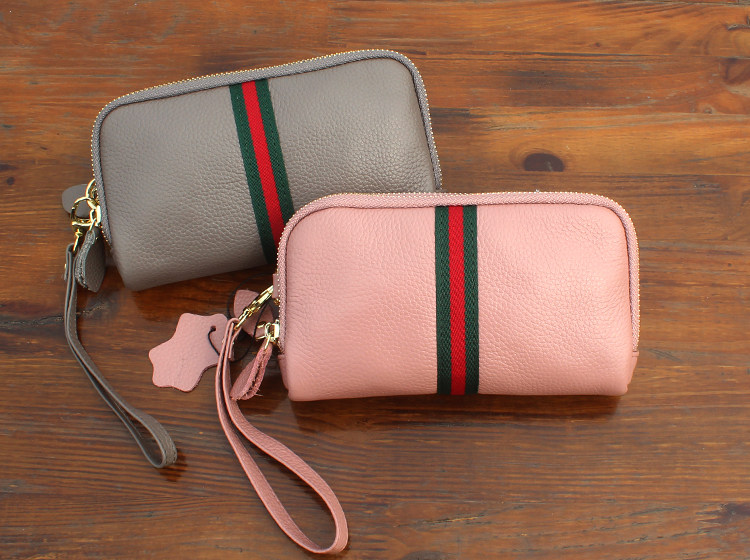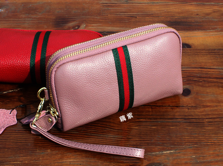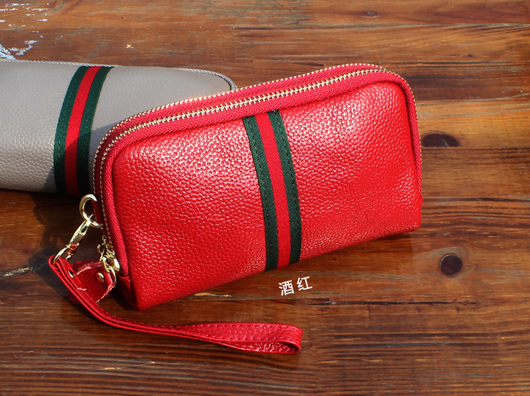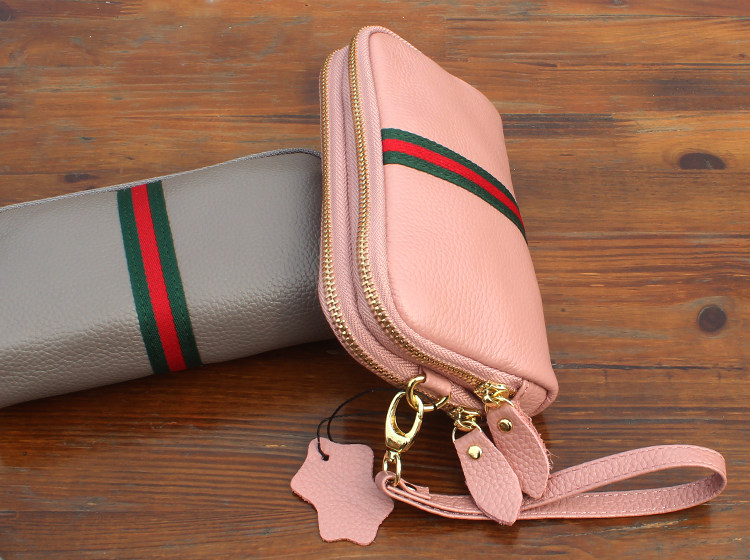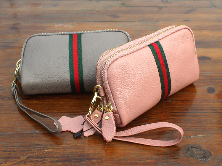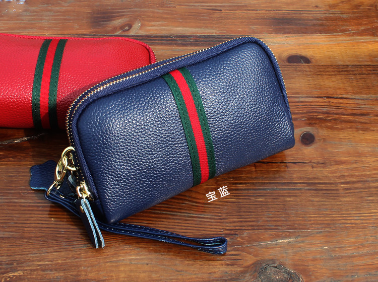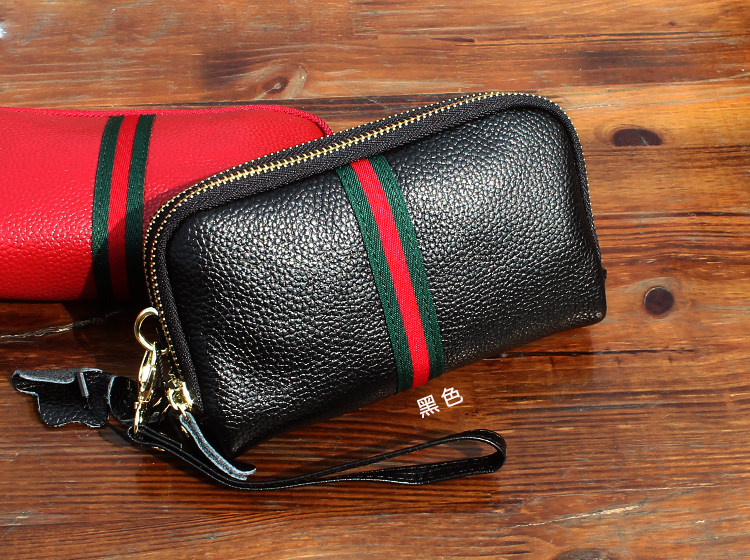 新款双拉链牛皮手拿包 欧美风女士零钱包手机包 时尚手抓包