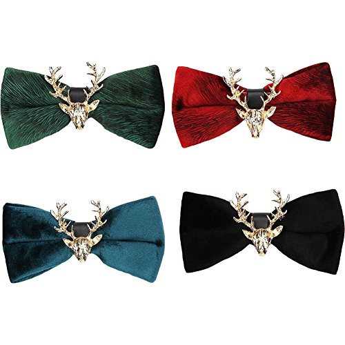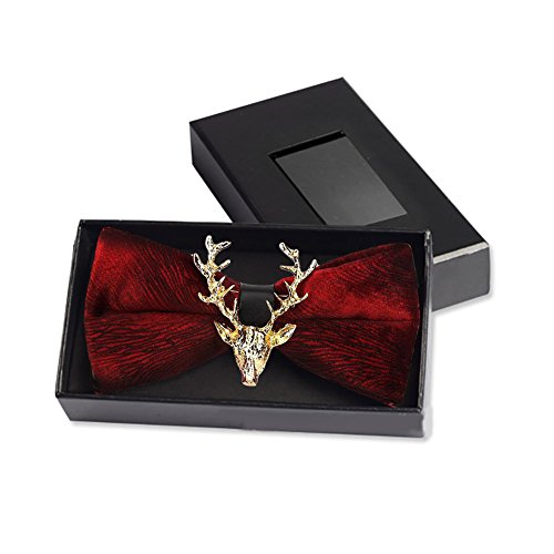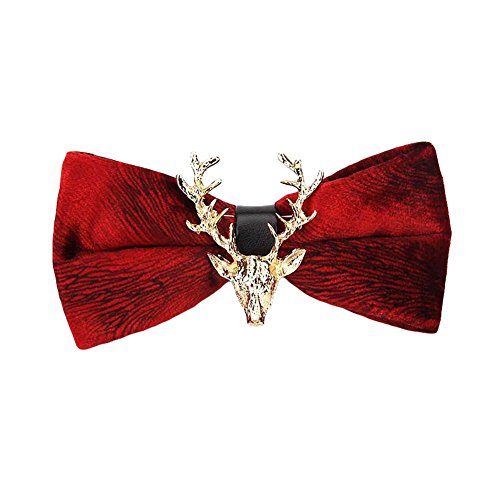 (Mwfus)/Accessories/Ties/DIRECT FROM USA/Mwfus Men's Tuxedo Suits Velvet Bow Tie with Gold Reindeer Wedding Party Necktie