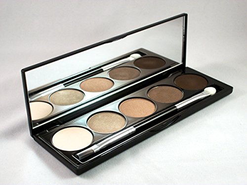 - 5 eyeshadow colors in mirror compact with double ended brush.