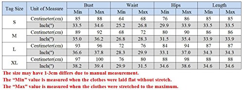 Inch(") S: ---Bust: 33.5-34.6 ---Waist: 25.2-26.8 ---Hips: 29.9-33.9 ---Length: 33.5-33.5