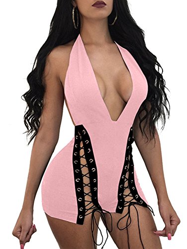 Features: sexy deep v neck halter, backless and back zipper,slim style