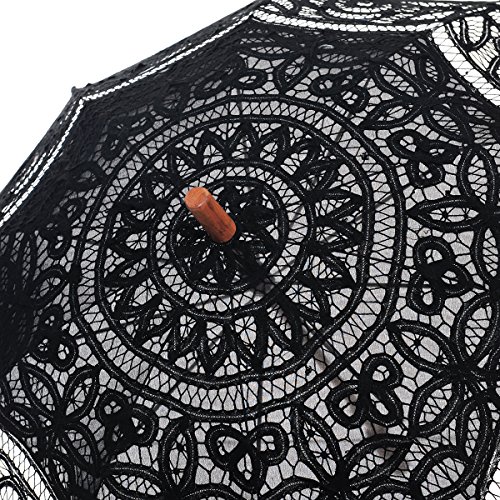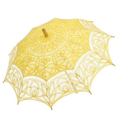 -. Feature : 25.6 inch(65cm)in length when closed, 30-31.5 inch(76-80cm) in diameter when open / Can't be used in rain, not waterproof / Individually handmade, vintage battenburg lace is elegant and classic, it will give you a Lace Shadow to complete your beautiful wedding photo / Great for wedding party, photo props shower, tea parties or just for dress up, with its lovingly crafted details, this umbrella will amaze any of your special day / For more styles, please search ASIN: B018AK3FH6 B018ARY0AU B018ARY94M
