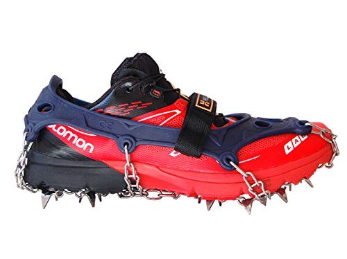 Made of ultra high-strength stainless steel for durability and weight reduction, the new trail crampon ultra brings the trail crampon's Legacy of superb traction performance to those needing to travel faster and lighter. 18 spikes offer aggressive traction on any icy surface and distribute pressure to withstand wear. The trail crampon ultra will help keep your running program on track through the colder months when conditions become slippery. Carry case included.Feature