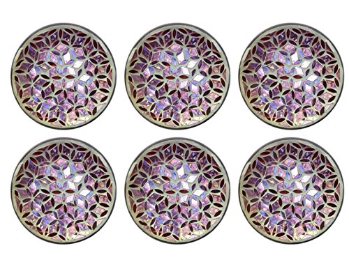 Biedermann & Sons Pink Floral Mosaic Glass Plates (Box of 6)