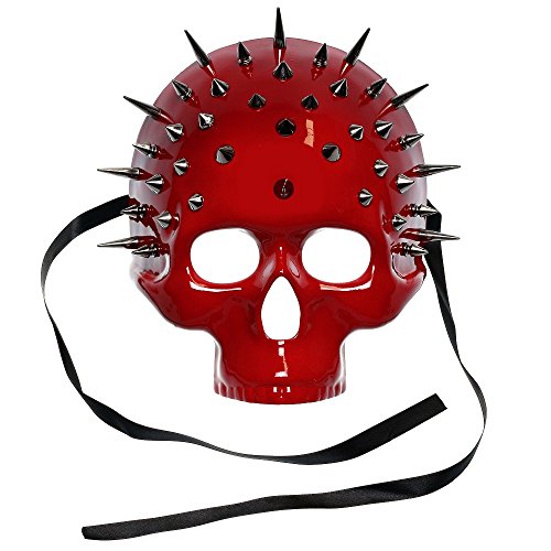 -. Title : ILOVEMASKS Steampunk Spikes Skull Venetian Masquerade Half Face Mask - Glossy Red