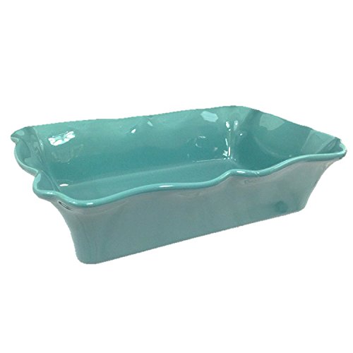 Pioneer Woman Flea Market Rectangular Ruffle Top Ceramic Bakeware Turquoise 3.6 Quart