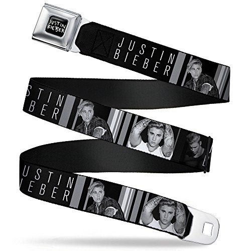 (BD)/Accessories/Belts Buckles/DIRECT FROM USA/JUSTIN BIEBER Full Color Black/White Seatbelt Belt - JUSTIN BIEBER 3-Poses/Stripes Black/Grays/...