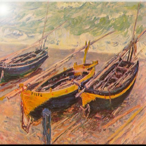 Rikki Knight RK-12intilec-3633 12" X 12" Claude Monet Art Three Fishing Boat in Eretart Design Ceramic Art Tile