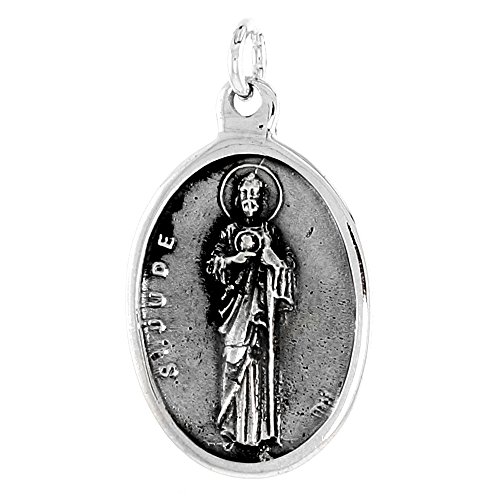 Sterling Silver St. Jude Medal 15/16" X 5/8" (24 mm X 16 mm).
