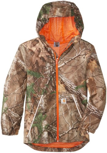 - Title : Carhartt Little Boys' Packable Work Camo Hooded Rain Jacket, Real Tree Brown, Medium-10/12