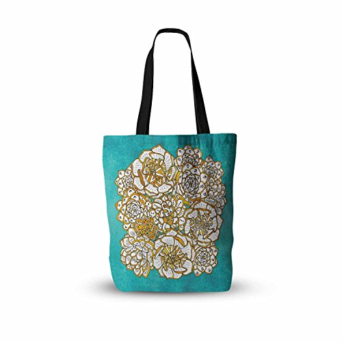KESS InHouse Pom Graphic Design "Bohemian Succulents II" Teal Gold Floral Everything Tote Bag, 13" x 13", Multicolor