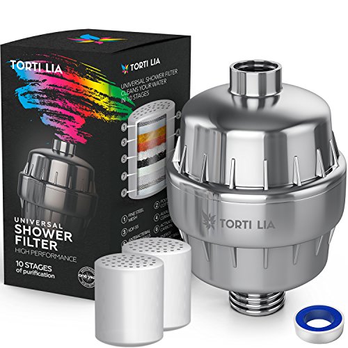 Shower Water Filter 10 Stage Shower Filter For Hard Water Removes Chlorine and Harmful Substances - Showerhead Filter High Output Prevents Hair and Skin Dryness - By Torti Lia