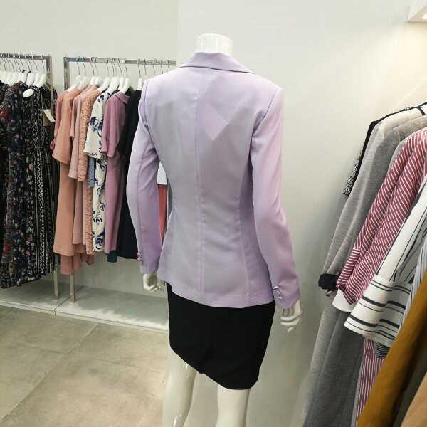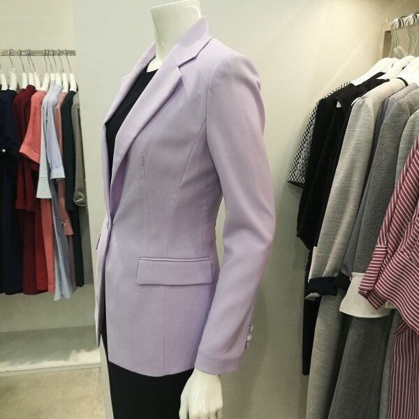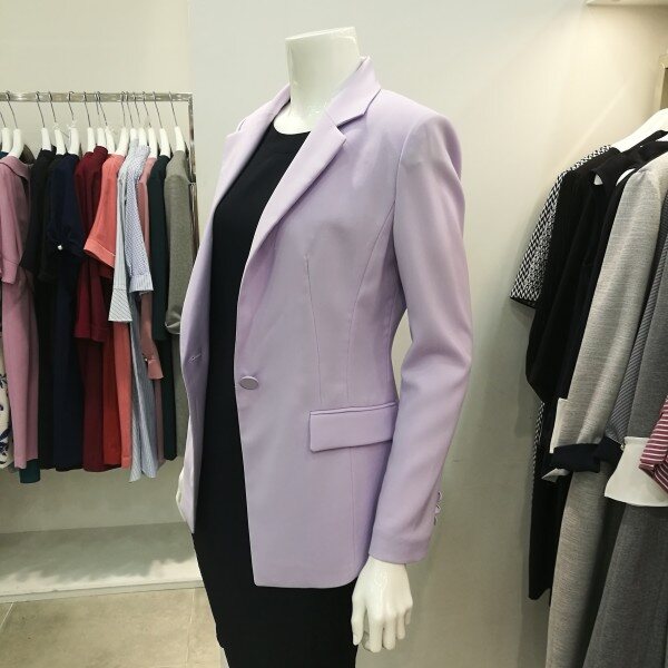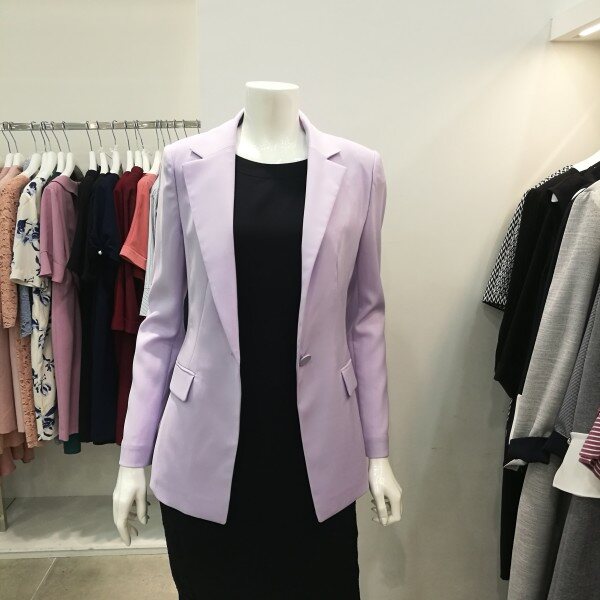 기본테일러드카라있으며 슬림핏이고 은은한 라벤더 컬러가 고급스러움을 더했다. 기본자켓을 원하시는분들한테 딱 좋아요.