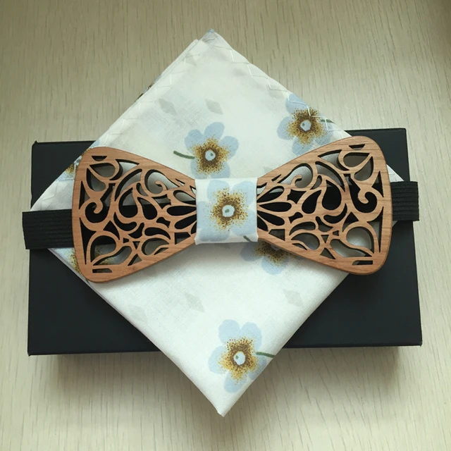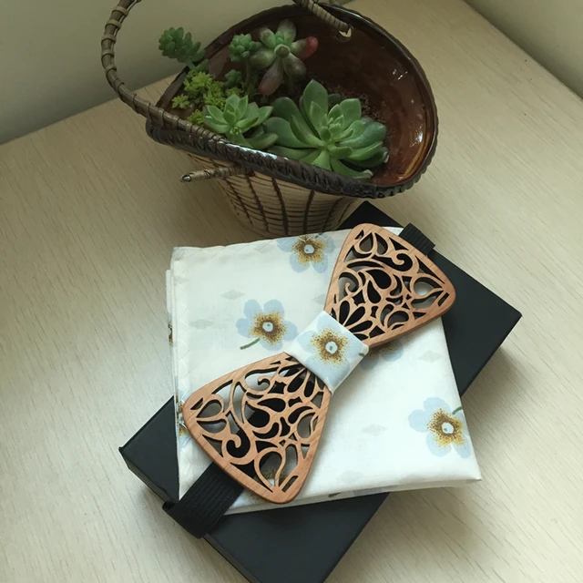 [해외]새로운 사랑스러운 디자인 수제 나무 망 나무 나비 넥타이 포켓 스퀘어 비즈니스 넥타이 나무 나비 넥타이