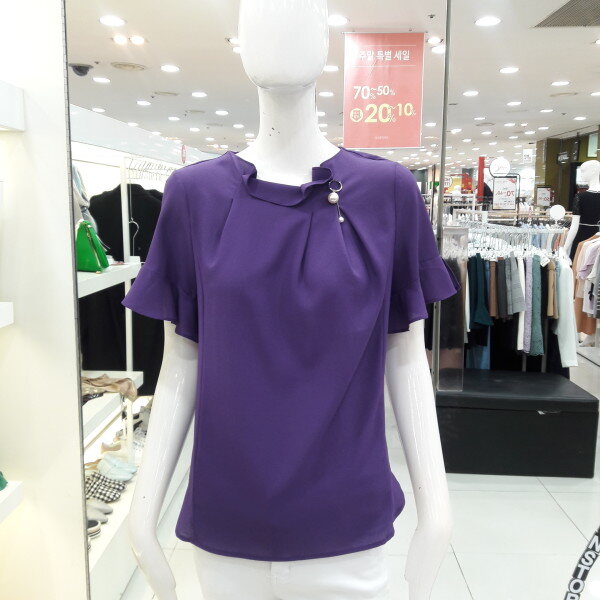 18년 여름 신상 러블리 블라우스입니다 넥선프릴과 소매프릴이 여성스러운 분위기입니다 가벼운 소재감으로 스커트 슬랙스에 연출하기 예쁜 스타일입니다