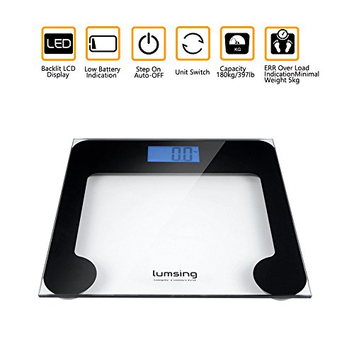 Lumsing Digital Body Weight Bathroom Scale with Extra Large Lighted Display, Tempered glass, 400 Pounds Scales