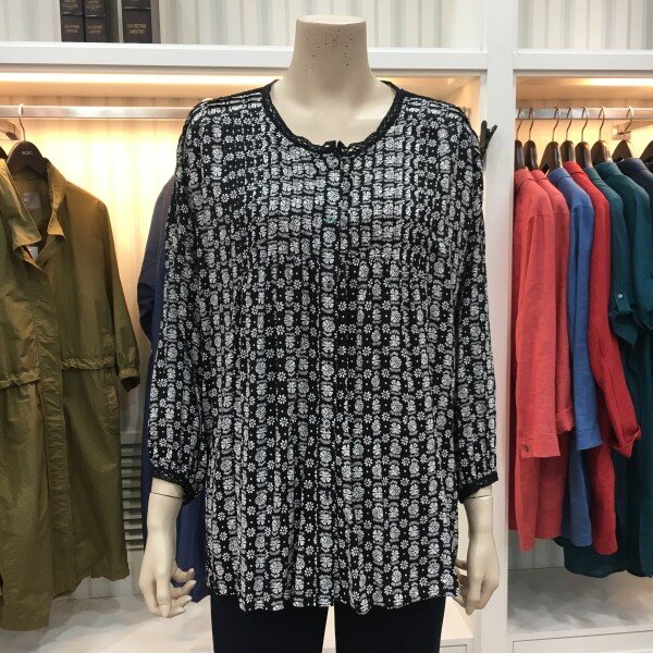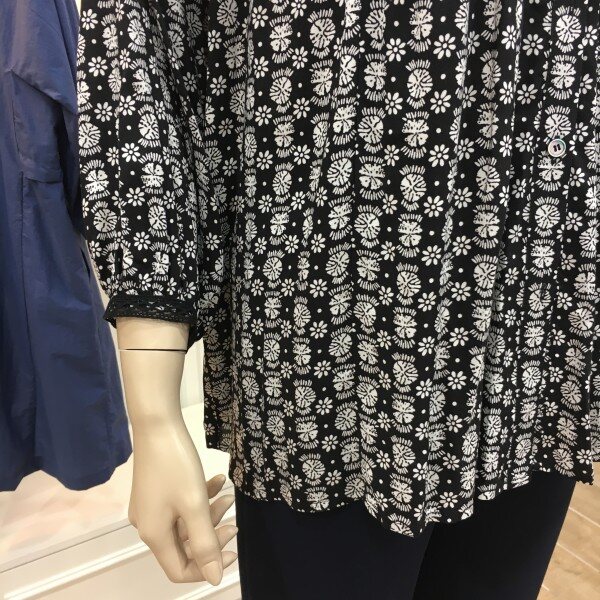 로맨틱한 플라워 패턴 블라우스를 소개드려요~ 빈티지한 블랙컬러감의 블라우스에 화이트 플라워 패턴으로 디자인하여 페미닌하게 연출해주고, 네크라인부터 어깨, 소매라인까지 레이스 디테일로 러블리함을 살짝 더했어요~ 부드러운 재질감이 몸에 닿아도 감기는 느낌이라 피부 민감하신 분들도 입으시면 좋아요! 봄부터 가을까지 쭉- 입기 좋은 블라우스로 적극추천드린답니다~ 총장길이는 55사이즈 기준으로 66cm 입니다.