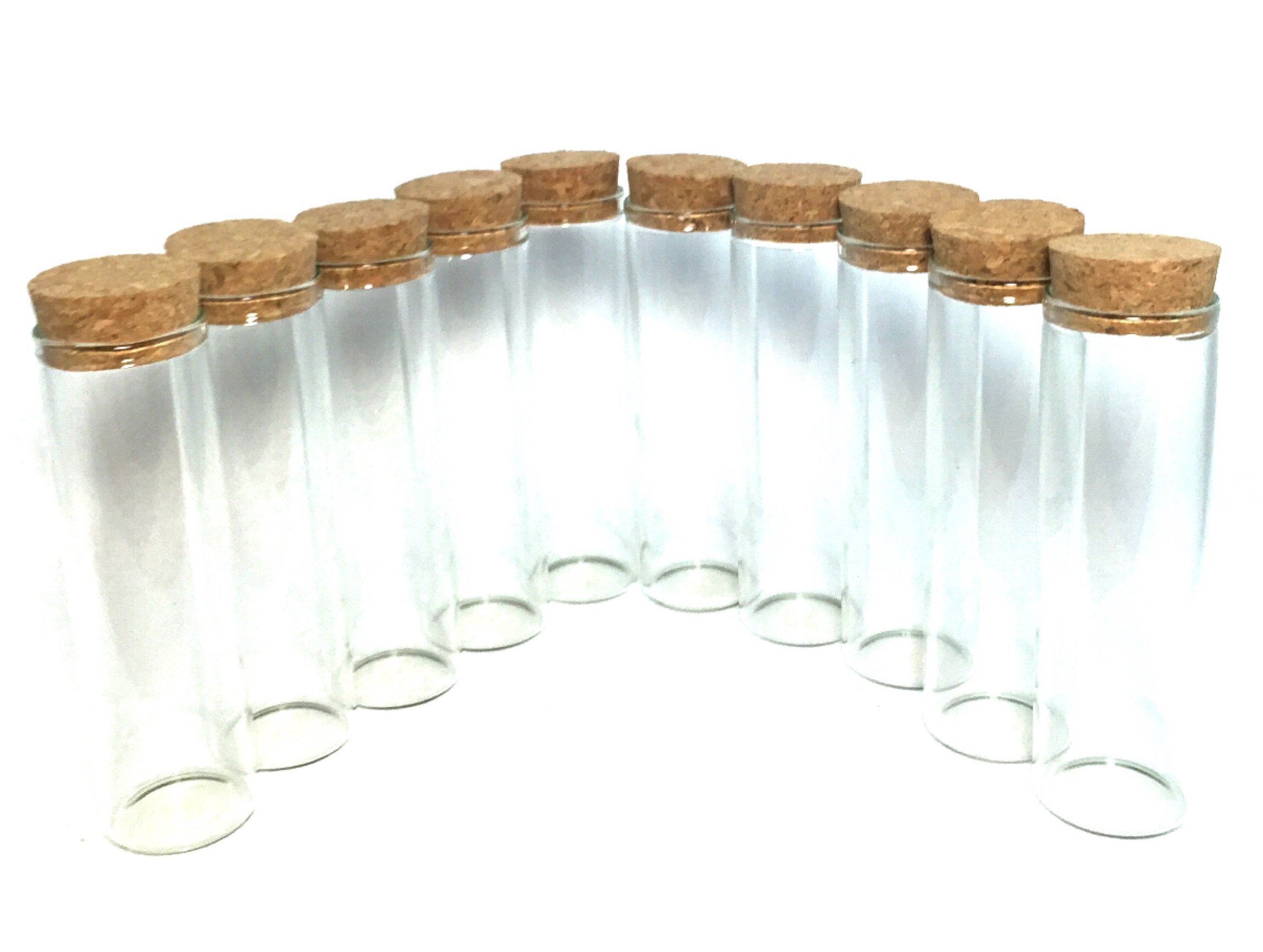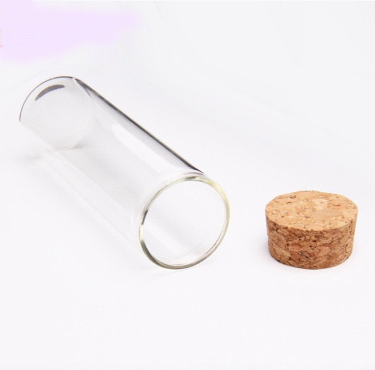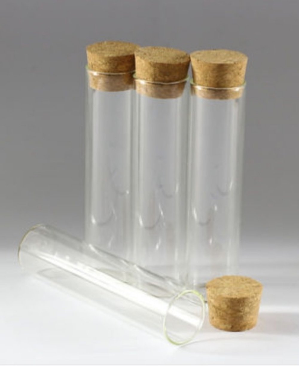 It is a cute glass bottle with a lid of cork