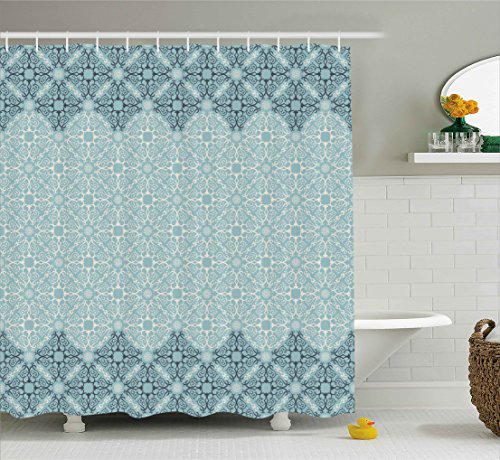 Morrocan Shower Curtain by Ambesonne, Modern Design with Eastern Ethnic Style Forms Ivy Frame like in Two Different Colors, Fabric Bathroom Decor Set with Hooks, 70 Inches, Seafoam